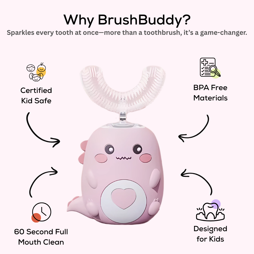 With our automatic Brush Buddy, brushing no longer feels like a chore—it becomes the best part of your child’s routine. Designed to make dental care exciting, this brush turns two minutes of struggle into 60 seconds of giggles, sparkle, and squeaky-clean teeth. Parents love it because it helps kids reach every tooth without missing spots, while children love it because it feels like play. Less fighting, more smiling—healthy habits have never been this easy.
